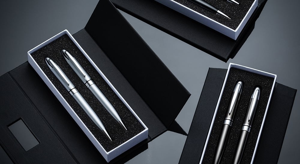 Oferecemos canetas, garrafas, cadernos, chaveiros e botons personalizados e muito mais